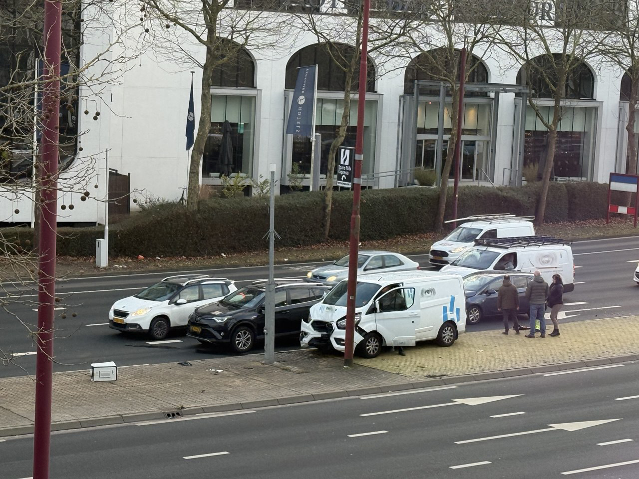 Op de N210, in de richting van Nieuwegein, staat een flinke file. Net voor het kruispunt bij de Weg naar de Poort heeft een aanrijding plaatsgevonden tussen vier voertuigen. Een busje is daarbij tegen een flitspaal gereden, waardoor de flitskast van de paal is losgekomen.